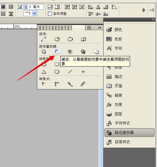 3、打開并找到路徑查找器,路徑查找器里面有很多功能,這里就先簡單介紹一下最基本的幾個