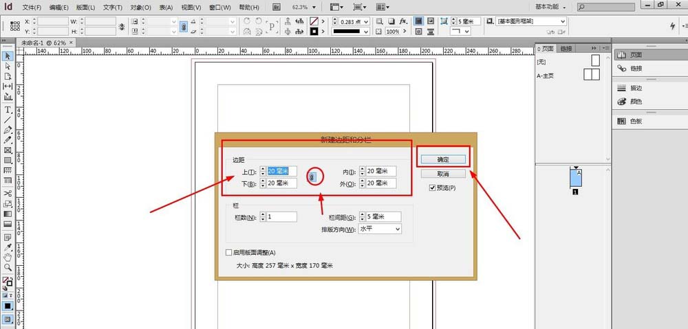 4、出現如下窗口,修改“邊距”數據(這個根據需要來,建議中間的鏈接符號點上),然后再點擊“確定”