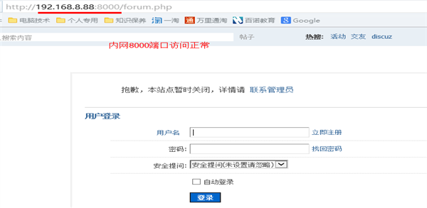 一切弄好好之后我們就來測試了.測試內網IP端口正常訪問。