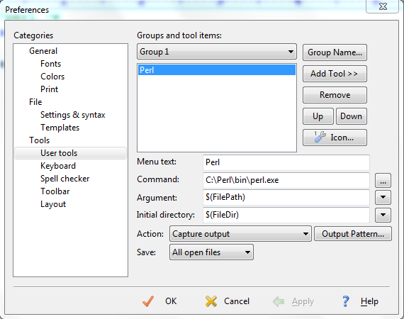 Tool >> Configure User Tool配置如下: