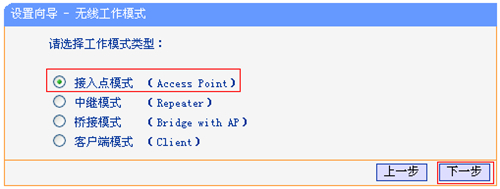 選擇 接入點模式(Access Point),點擊 下一步。
