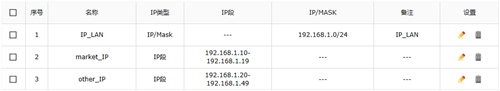 同樣的方法,添加其他部門的IP地址段,添加后列表如下: