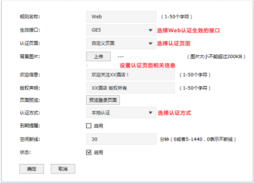 進入路由器界面,點擊“認證管理>認證設置>Web認證”,點擊+新增,添加如下Web認證規則。