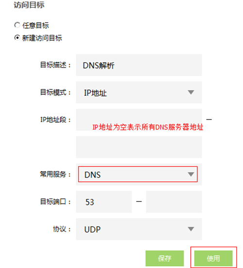 添加員工在任何時間、訪問任何目標的DNS服務,如下圖: