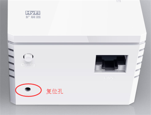 復位方法:通電情況下,使用回形針等尖狀物體按住HyFi路由器和擴展器上面的Reset鍵,指示燈快閃幾次變為常亮表明復位成功(按住Reset孔大概5-10秒)。
