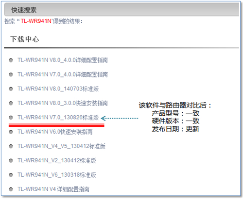 4、在下載文件中找到路由器型號的硬件版本全部吻合的軟件(結尾為標準版的文件),如下圖: