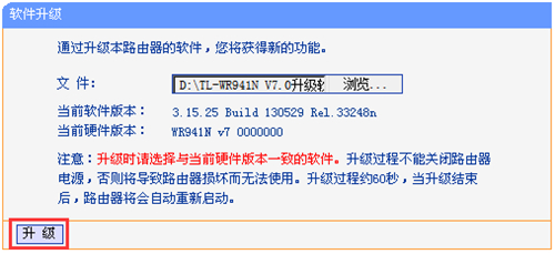 11、開始升級,看到 文件 中已顯示選擇好的升級文件路徑。無需做任何修改,直接點擊 升級 按鈕,如下圖:
