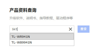 2、訪問TP-LINK服務支持,在資料搜索欄中輸入產品型號中的數字部分,會自動匹配您的型號,選擇正確的型號,如下圖: