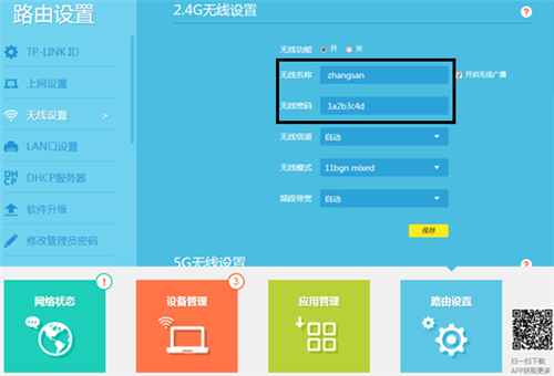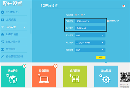 在 路由設置 > 無線設置 中可以查看或修改設置,如下: