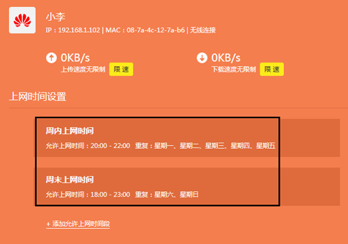 至此,上網時間控制設置完成,小李只能在允許的上網時間段上網。