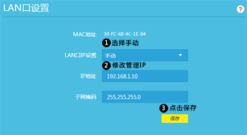 注意:后續登錄路由器管理界面,需要使用修改后的IP地址登錄,請務必牢記。