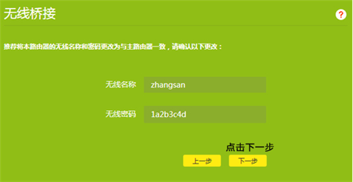 7、設置副路由器的無線密碼,直接點擊 下一步,如下: