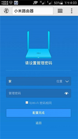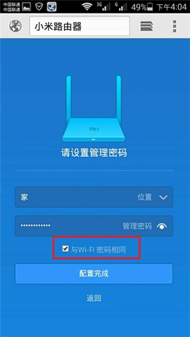 7、也可以勾選下面的“與Wi-Fi密碼相同”的選項,即把WiFi密碼作為管理密碼。——>點擊“配置完成”。