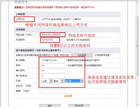 5、 進入快速向導,選擇上網方式(最新軟件版本在【快速向導】中沒有了用戶保修信息填寫選項)