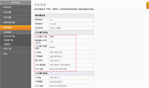 5、保存以后點擊【運行狀態】,若已獲取到上端設備分配地址,則表示設置成功,此時已可連接副路由器上網。