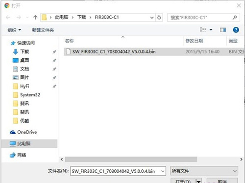 4、瀏覽找到電腦上解壓后的.bin固件文件。
