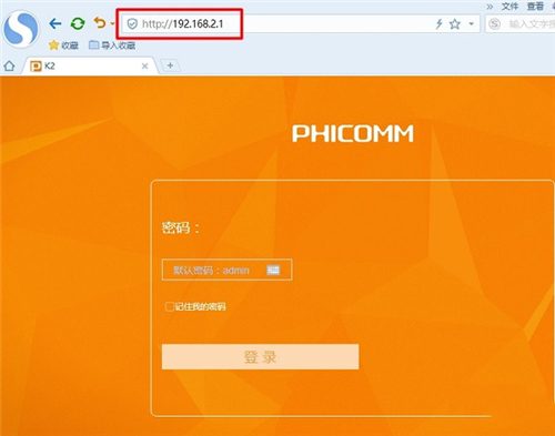 4、用IP地址打開。使用p.to作為設置網址的斐訊路由器,默認LAN口IP地址是:192.168.2.1。大家可以理解位p.to和192.168.2.1,都是斐訊路由器的設置網址。當在瀏覽器中輸入p.to后,打不開設置頁面時;可以嘗試下使用192.168.2.1這個IP地址,看能否打開斐訊路由器的設置頁面。