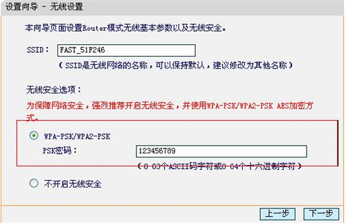 步驟7:重啟完成,電腦的無線網絡連接會自動斷開,此時需重新連接FW150RM的無線網絡(本例中SSID為FAST_51F246),連接過程中需要輸入FW150RM的無線PSK密碼(本例為123456789)。