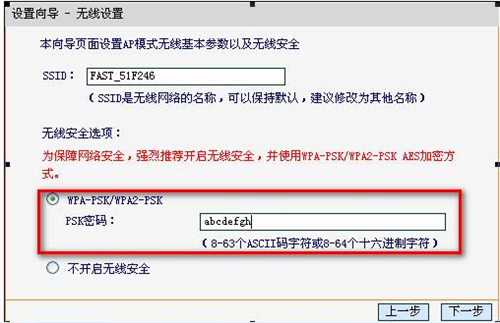 步驟4:選擇“AP”,點擊“下一步”,彈出無線設置頁面,如下圖所示。
