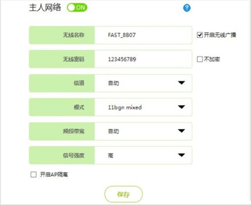 2、設置主人網絡wifi密碼。點擊“高級設置”——>“無線設置”——>“主人網絡”——>修改“無線密碼”——>點擊“保存”
