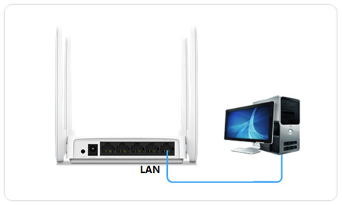 按照下圖將MW323R的任意一個(gè)LAN口(即1~4號(hào)接口)與前端網(wǎng)絡(luò)接口(或局域網(wǎng)交換機(jī))連接。需要上網(wǎng)的臺(tái)式機(jī)可以連接任何其他LAN口上網(wǎng),無線終端搜索到設(shè)置好的無線信號(hào)即可上網(wǎng)。