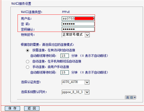 在路由器管理界面,點(diǎn)擊 網(wǎng)絡(luò)參數(shù) >> WAN口設(shè)置,在列表中找到PPPOE條目并點(diǎn)擊 編輯,在WAN口服務(wù)設(shè)置中,確認(rèn)填寫的寬帶賬號(hào)密碼是否正確。