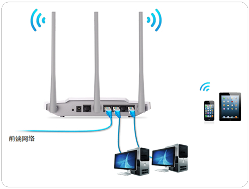 按照應(yīng)用拓?fù)鋱D將MW4530R的任意LAN口(即1~4號接口)與前端網(wǎng)絡(luò)接口(或局域網(wǎng)交換機(jī))相連接。需要上網(wǎng)的臺式機(jī)可以連接任何LAN口上網(wǎng),無線終端搜索到設(shè)置好的無線信號即可上網(wǎng)。