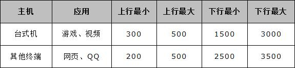 在后續上網過程中,臺式機的最小下行帶寬可以達到1500Kbps,其他終端一起使用的最小下行帶寬為2500Kbps。