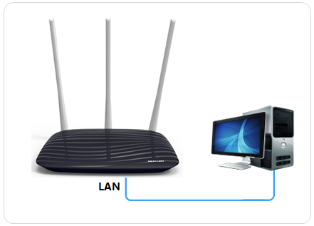 8、按照下圖將MW450R的任意一個LAN口(即1~4號接口)與前端網絡接口(或局域網交換機)連接。需要上網的臺式機可以連接任何其他LAN口上網,無線終端搜索到設置好的無線信號即可上網。
