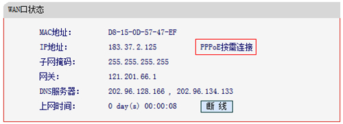 12、重啟完成后,把電腦的IP地址設置為自動獲取并連接修改后的無線網絡(zhangsan)。進入路由器管理界面,點擊 運行狀態,查看WAN口狀態,如下圖框內IP地址不為0.0.0.0,則表示設置成功。