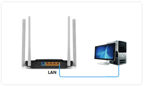 8、按照下圖將MW320R的任意一個LAN口(即1~4號接口)與前端網絡接口(或局域網交換機)連接。需要上網的臺式機可以連接任何其他LAN口上網,無線終端搜索到設置好的無線信號即可上網。