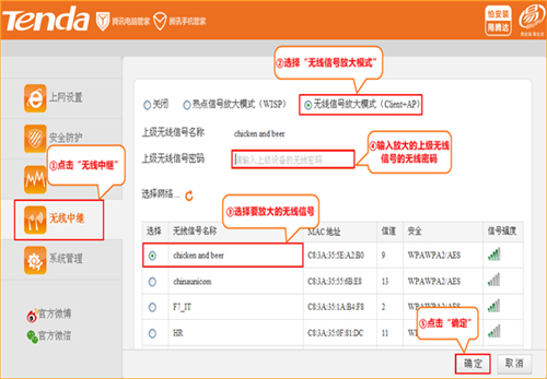 在瀏覽器中輸入:192.168.0.1 按回車鍵,在跳轉的頁面中點擊“無線中繼”: