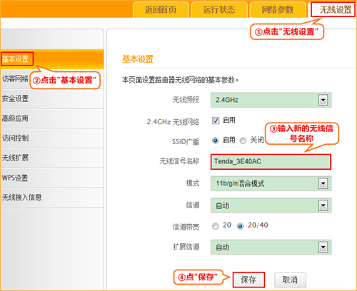 第三步:點擊“無線設置”-“基本設置”更改無線網絡名稱