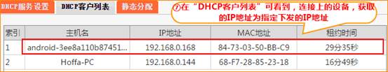 將之前綁定的終端連上E10的網(wǎng)絡,在DHCP客戶列表里面,可以看到,終端獲取的IP地址是綁定列表里面的IP地址,設置已經(jīng)成功。