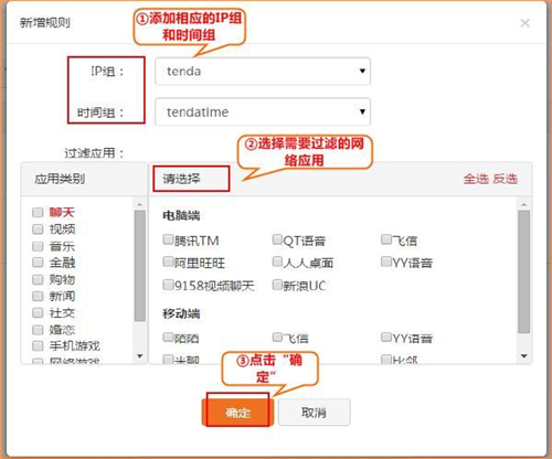 第四步:添加網(wǎng)絡(luò)應(yīng)用過(guò)濾規(guī)則并確定