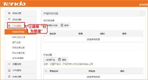 通過(guò)電腦進(jìn)入W20E增強(qiáng)型管理界面,點(diǎn)擊“行為管理”。