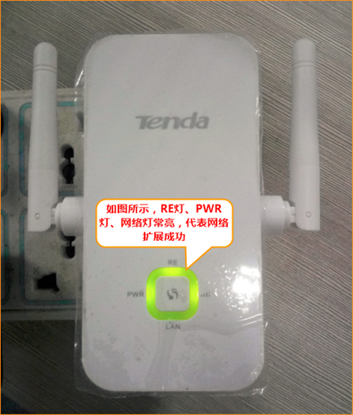 2.等待約1分鐘后,當擴展器的RE燈常亮時,表示網絡擴展成功。
