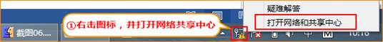 右擊電腦桌面右下角的網絡圖標,選擇“打開網絡共享中心”