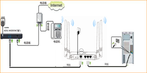 1、直接將入戶的網線(沒有貓的用戶)或者貓出來的網線(有貓的用戶 )接在路由器的WAN口,再找一根短網線,一頭接電腦,一頭接路由器LAN1/LAN2/LAN3任意接口,接線方式如下圖: