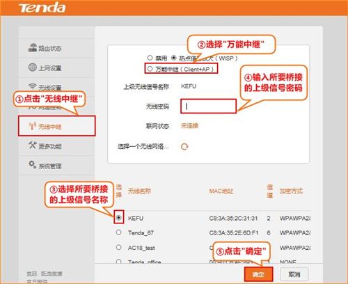 或選擇“萬能中繼”模式,設置后本機無線信號名稱為上級信號名稱。