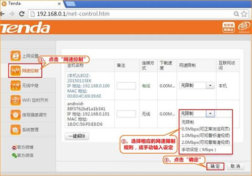 2、在跳轉的頁面中點擊 “網速控制”進行網速限制,參考如下操作步驟:
