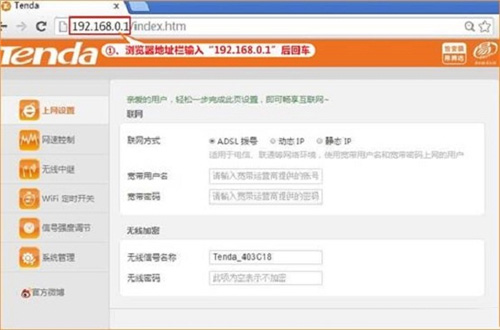 1、在瀏覽器的地址欄中輸入:192.168.0.1 按回車鍵,登錄到騰達(dá)F6無線路由器的設(shè)置界面。