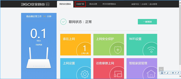 打開Web管理頁的主界面后,點擊頂部的第二個選項 功能擴(kuò)展(P1和5G路由) 或 路由器設(shè)置(mini路由),如下圖