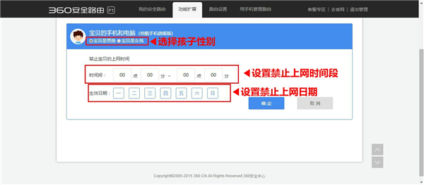 小編在這里把第一個禁止上網(wǎng)時間段設(shè)置成了15時00分至16時00分