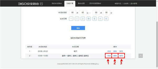 每個路由最多可以設(shè)置6個關(guān)閉指示燈時間段