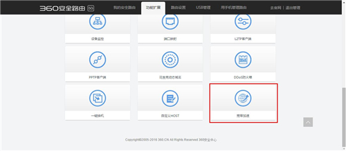 2、打開Web管理頁的主界面后,點擊頂部的第二個選項 功能擴展,如下圖