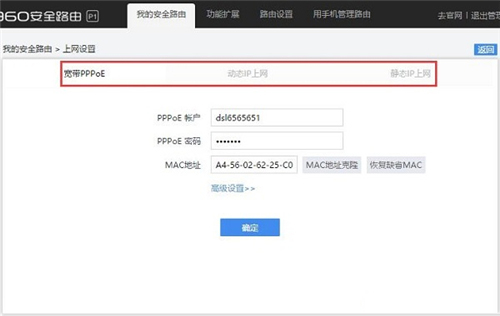 ③360 P1路由器會自動檢測上網方式,如下圖所示。