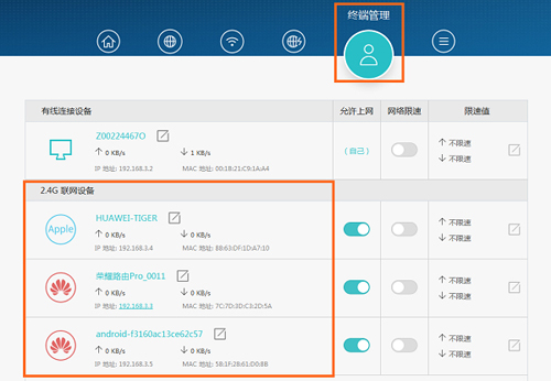 如果你的手機上安裝了華為的HiLink APP軟件,那么在手機連接到榮耀路由Pro的wifi情況下,打開手機上的HiLink APP,然后點擊“用戶管理”