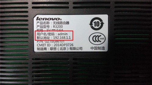 (1)、聯想R3200路由器默認的登錄用戶名、登錄密碼都是:admin,大家可以在R3200路由器底部標簽上查看,如下圖所示。