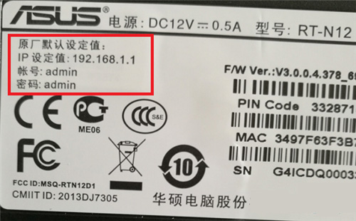 可以在自己這臺(tái)華碩路由器的底部銘牌/標(biāo)簽中,查看到該路由器的設(shè)置網(wǎng)址信息,如下圖所示: